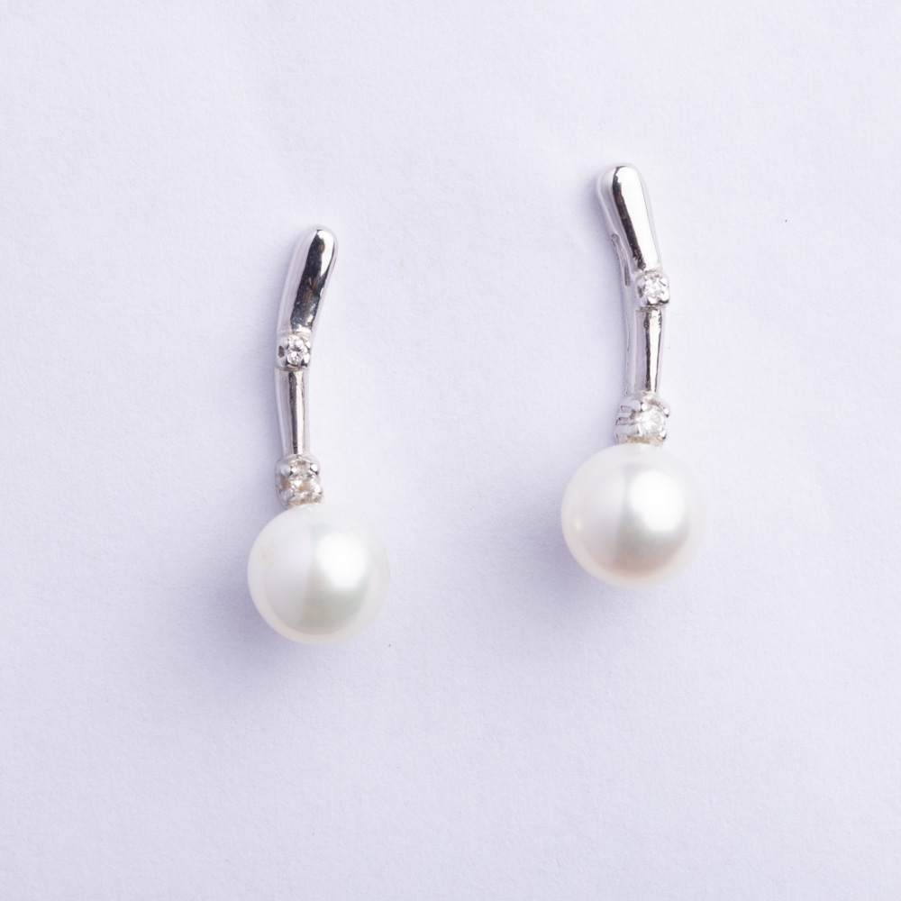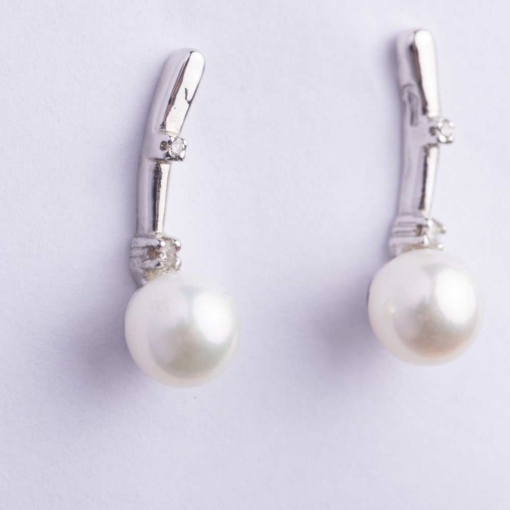 Orecchini in oro bianco con perle e diamanti. Orecchini essenziali e ricercati, dallo stile moderno che non tralascia il gusto per il classico: sono l’accessorio perfetto da indossare in ogni momento della giornata, dall’occasione di lavoro alla serata elegante.